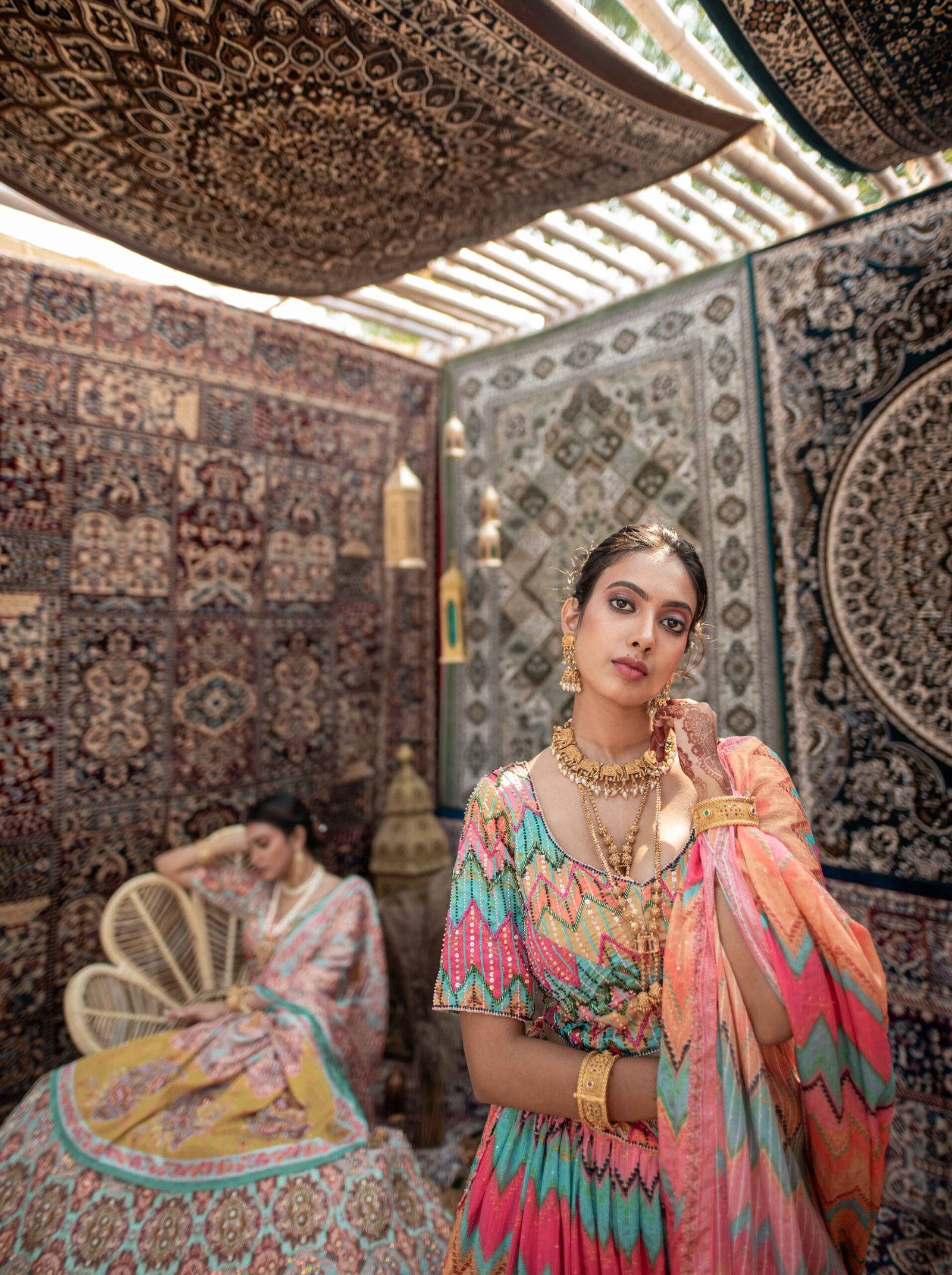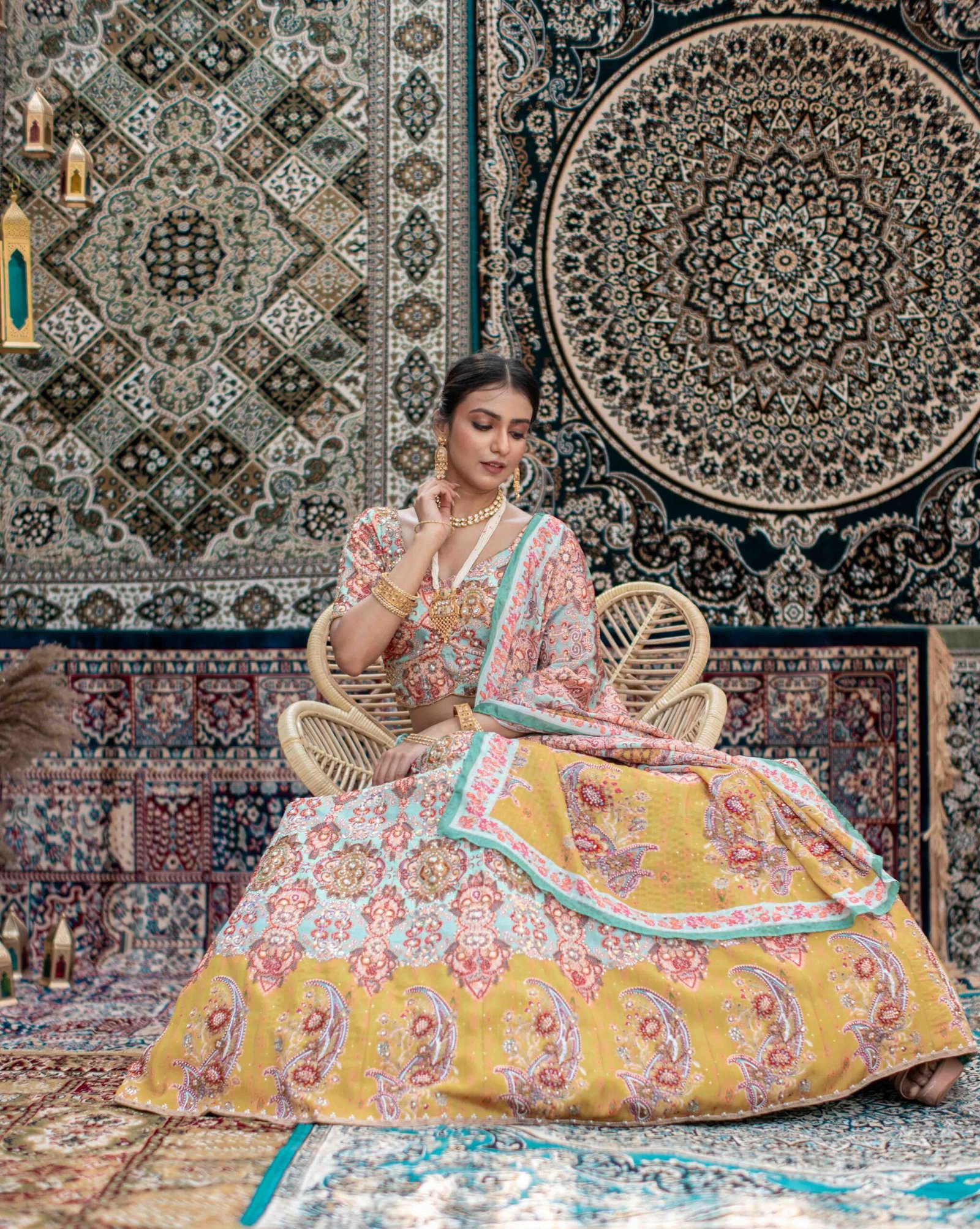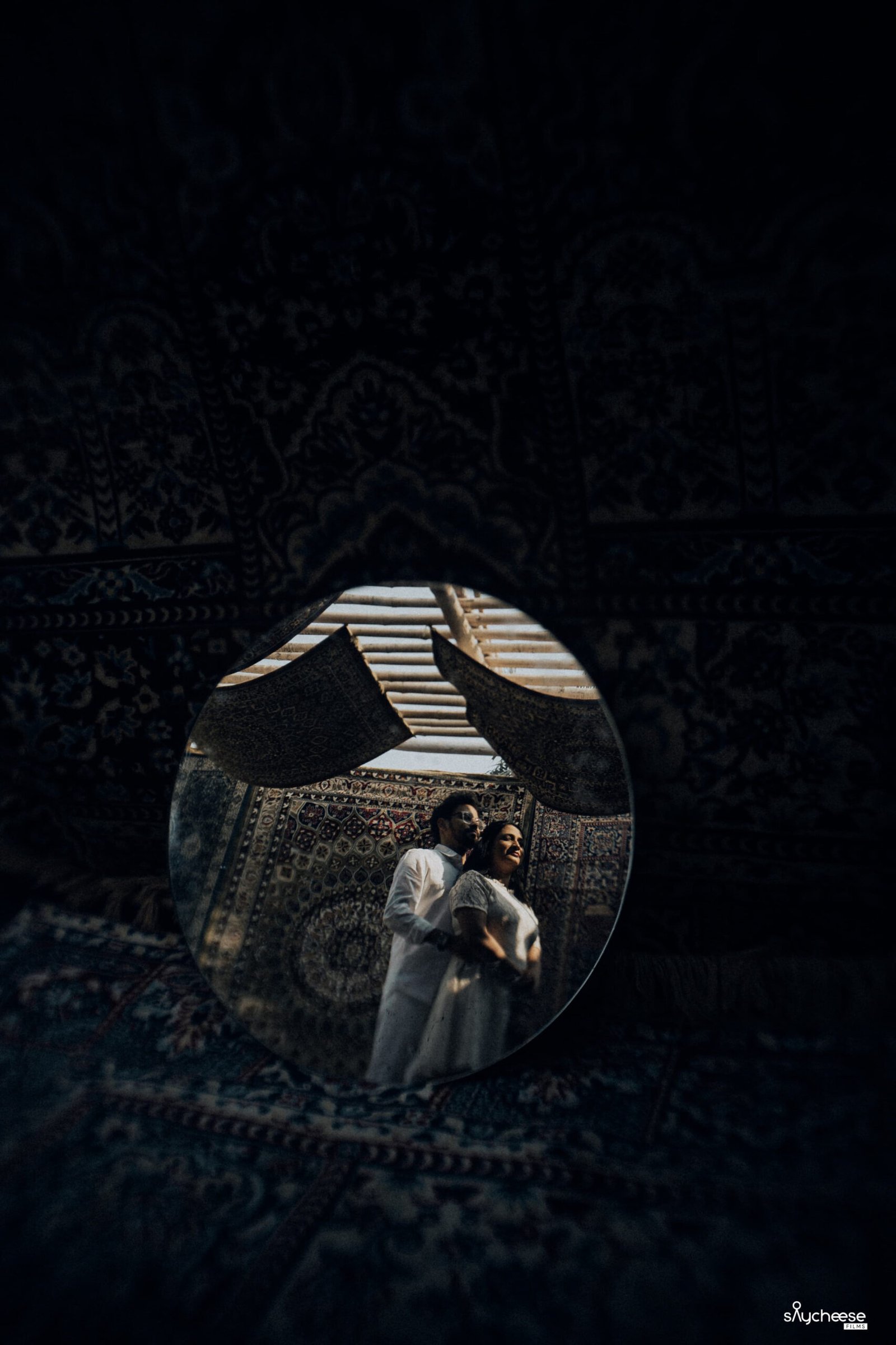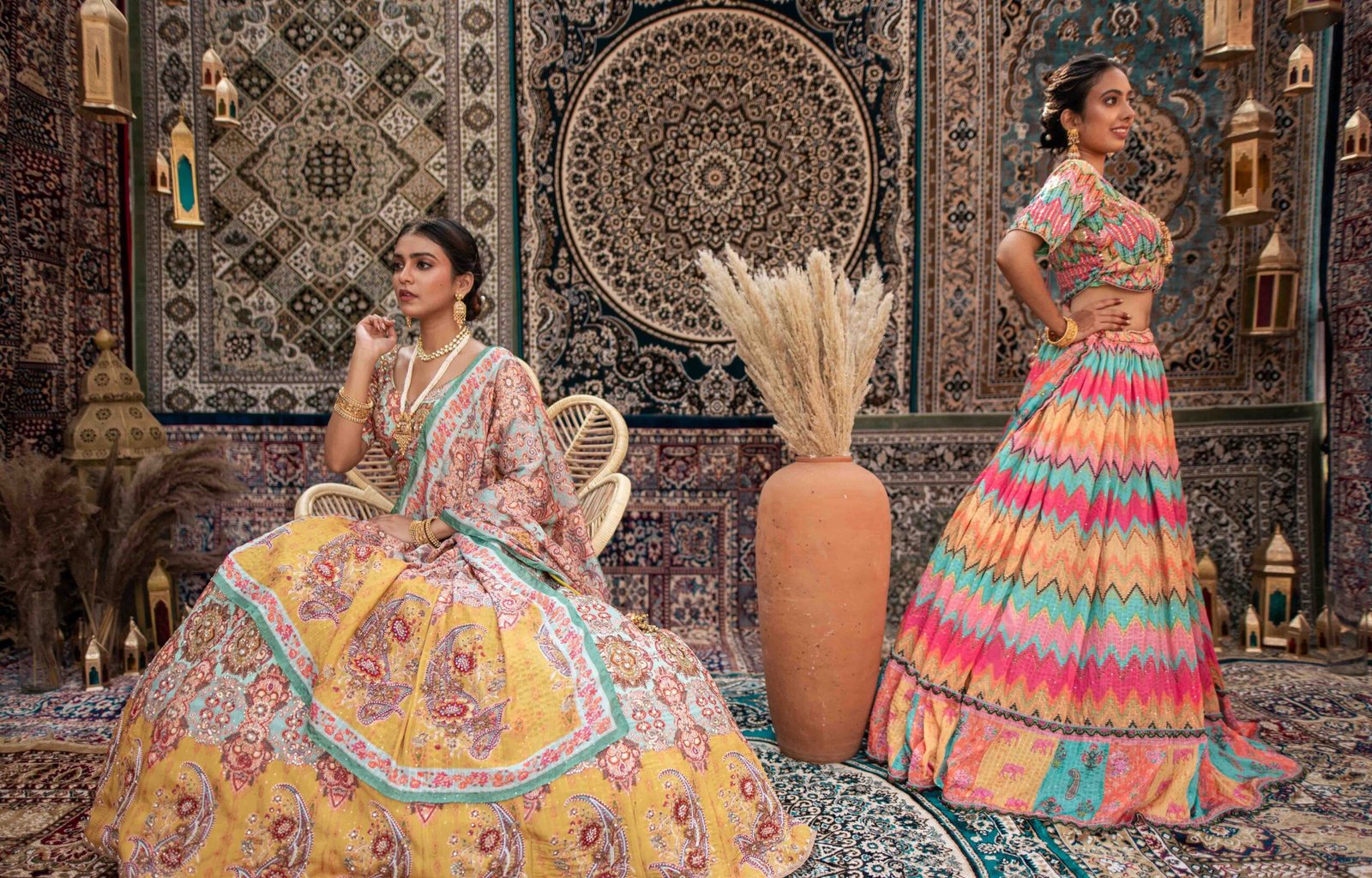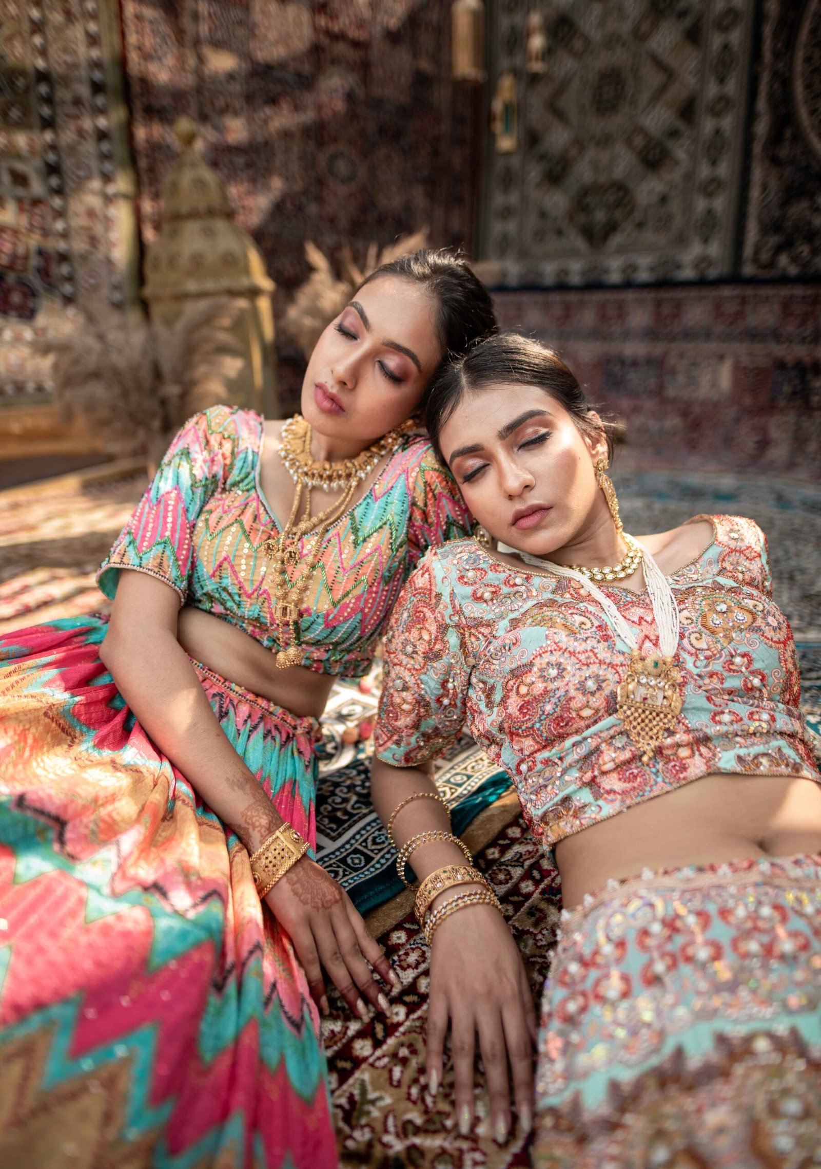 A cozy, luxurious setup with layered carpets and soft lighting, ideal for intimate, bohemian-inspired shoots.