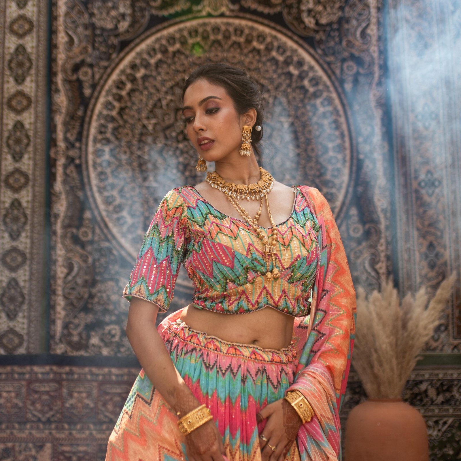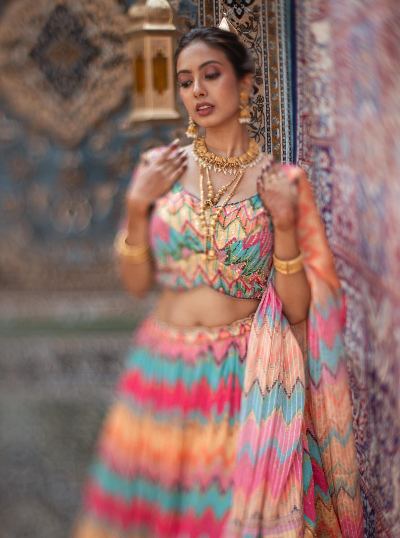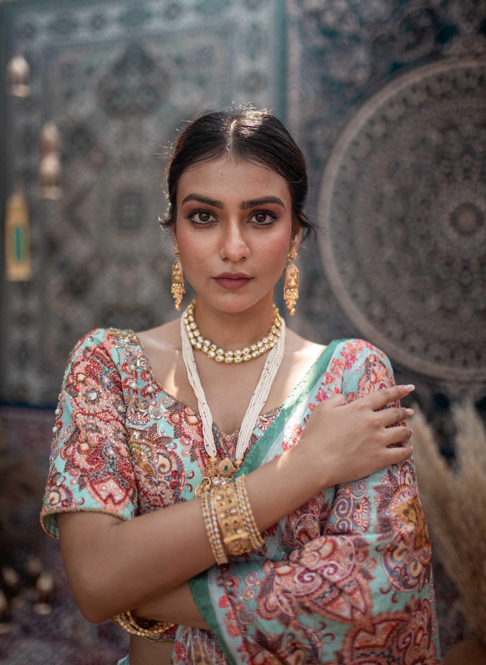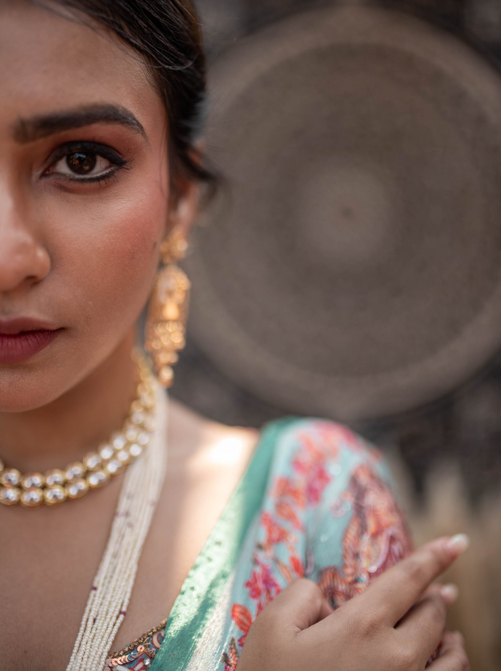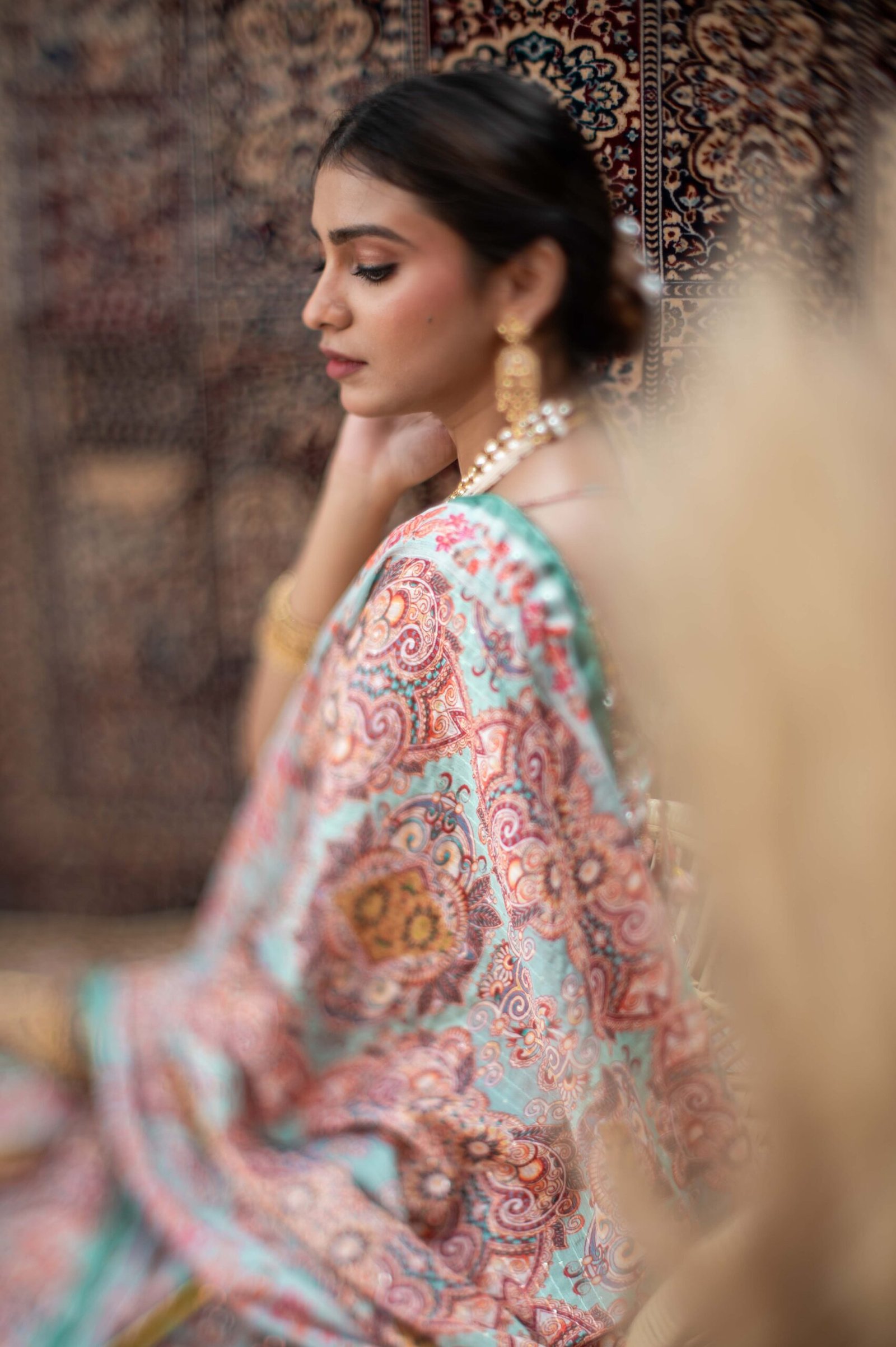 A cozy, luxurious setup with layered carpets and soft lighting, ideal for intimate, bohemian-inspired shoots.